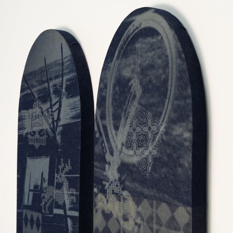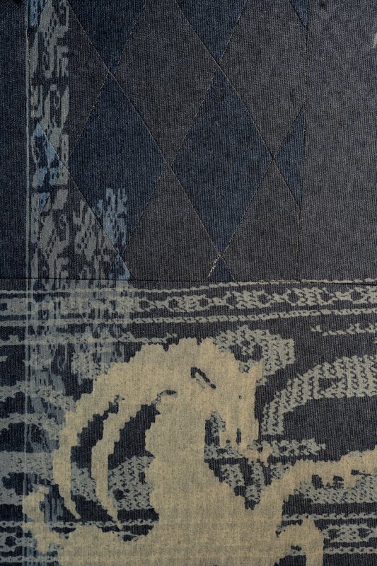 “ÜBERFELD” is the title of Lorenz Wanker’s series, which he dedicates to his Carinthian homeland. Growing up between Vienna and Carinthia, Wanker spent much of his childhood on his grandparents’ farm. In the series Überfeld, he juxtaposes these collected impressions of his rural origins with those of urban modernity. Using cross-stitch – a traditional local embroidery pattern – he explores the tension between innovation and tradition by imposing it onto denim fabric through a digital production technique: laser engraving.