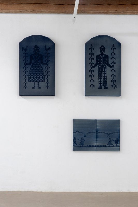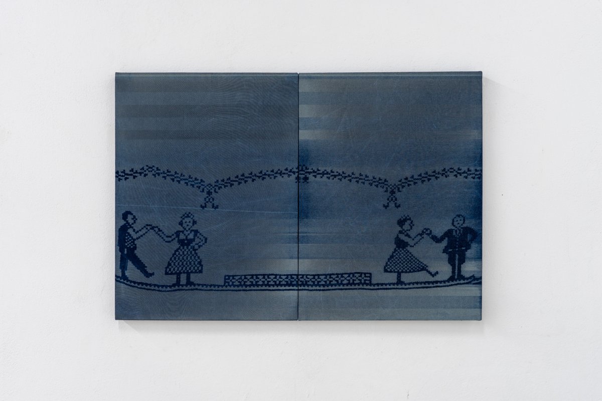 At the same time, blue jeans represent an equally old and tradition-rich material that has been in use for over 150 years. Originally conceived as workwear for gold rush miners, the fabric – and later the garment – became a consumer good and leisurewear for a broader population through the Western romanticism of Hollywood in the 1920s and 1930s. Following the end of the Second World War and the occupation of Europe by American soldiers, jeans finally made their way to Austria, where they quickly gained popularity, especially among the youth. In schools, where cross-stitch had once been taught, jeans became a rebellious symbol of youth against tradition and authority – everything cross-stitch once stood for – ultimately leading to the garment being banned. Jeans also emerged as a sign of women’s emancipation movements in the 1960s, as well as among hippies and anti-war activists, symbolizing solidarity with the working class.